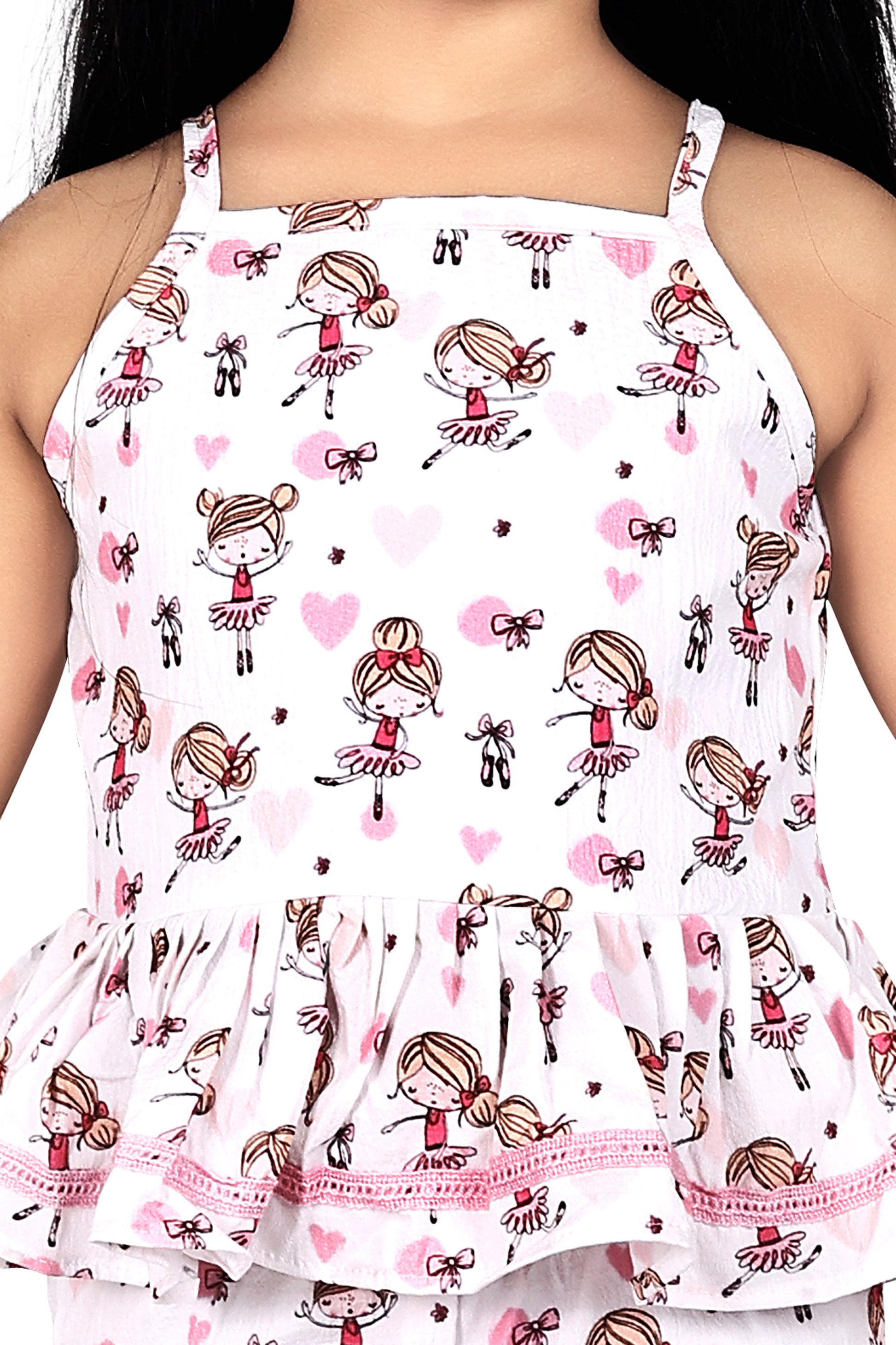 Beautiful dancing doll print two piece dress . It has cute top with hot pant.